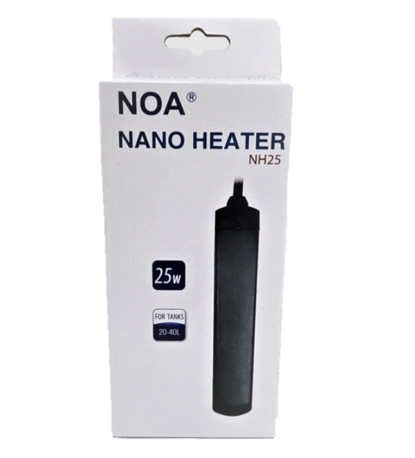 Der NOA Nano Aquarium heizer ist ein perfekter Notfall- und Nano-Heizstab. Egal ob Nanobecken bis 20 Liter oder ein Quarantänebecken in der Größe, der Nano Heizer mit 10 Watt ist eine optimale Möglichkeit, um solche kleinen Aquarien sparsam auf 25°C zu bringen. Dieser kleine Heizer ist nicht einstellbar, sondern hält einfach eine Temperatur von 25°C. Die zusätzliche, kunststoffummantelte Fläche sorgt für deutlich weniger Verbrennungsgefahr. Perfekt als Notfallheizer.